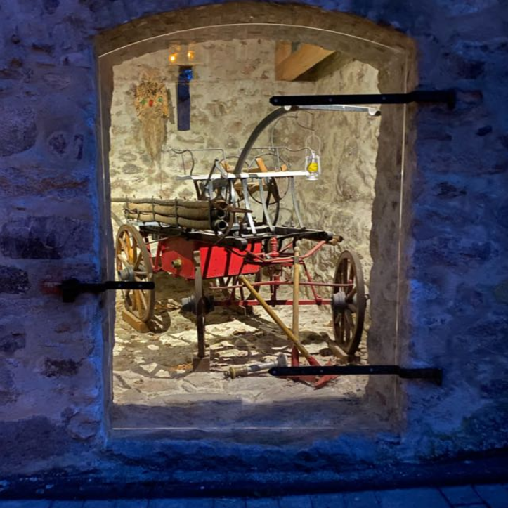 Das alte, in die Kirchenmauer integrierte Haus wurde mit einem neuen Dachstuhl und neuer Dacheindeckung versehen. Um der alten Handspritze einen würdigen Platz zu bieten wurde die Türe durch eine Glastüre ersetzt und der Stellplatz bei Nacht beleuchtet.